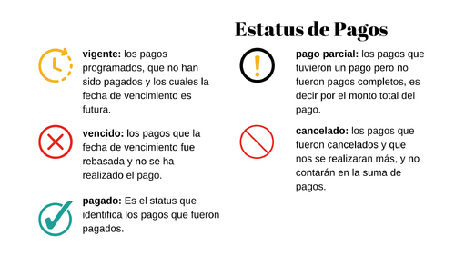 Los status de pago, identifican cual es la situación de los pagos, los status son: