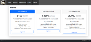 La Página de precios muestra las distintas opciones de planes de Ofrecetodo que permite elegir entre estas opciones.